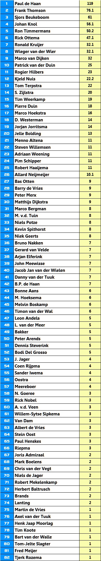 Eindstand na trainingsrit 01-09-16