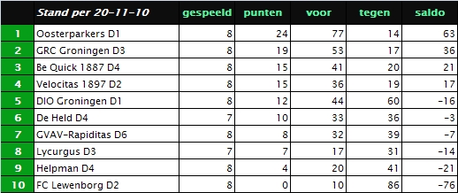 20-11-10 | Velocitas 1897 D2 | DIO Groningen D1 | ||